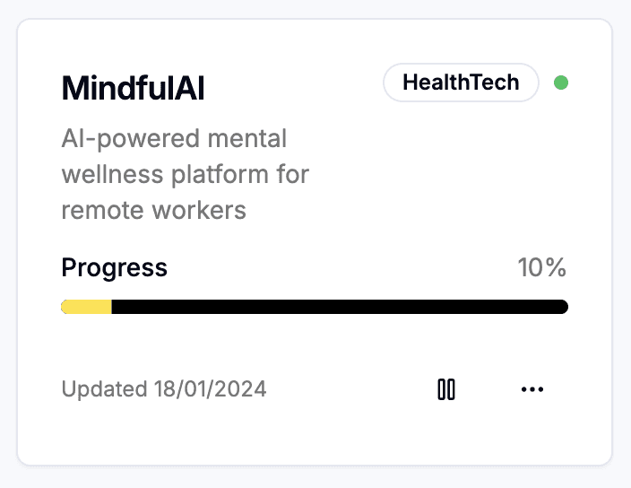 You can capture and develop multiple business ideas in one workspace. Free users have limited slots, while pro users can explore, refine, and execute unlimited ideas.